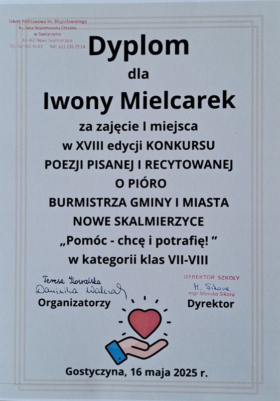 Konkurs Poezji Pisanej i Recytowanej o Pióro Burmistrza Gminy i Miasta Nowe Skalmierzyce