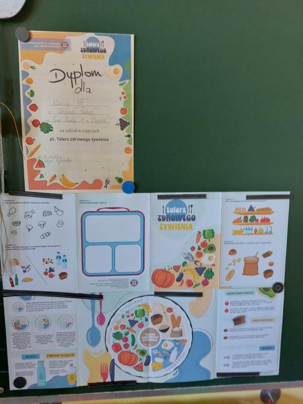 W dniu 20 października 2025 r. uczniowie klasy 2 i 3 uczestniczyli w zajęciach prowadzonych przez przedstawicielki Powiatowej Stacji Sanitarno - Epidemiologicznej na temat jamy ustnej oraz talerza zdrowego żywienia. Zajęcia są realizowane w ramach wojewódzkiego projektu edukacyjnego „MAM ZDROWE ZĘBY!!!” i „TALERZ ZDROWEGO ŻYWIENIA”. Celem głównym projektu jest popularyzacja zasad poprawnej higieny jamy ustnej oraz prawidłowego odżywiania wśród dzieci w wieku wczesnoszkolnym.