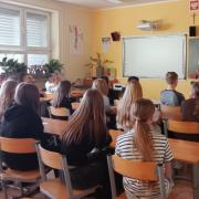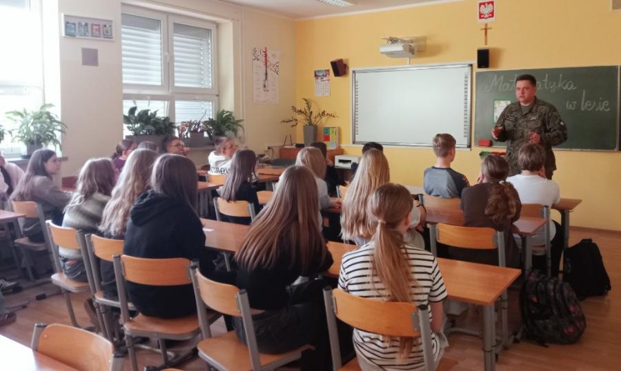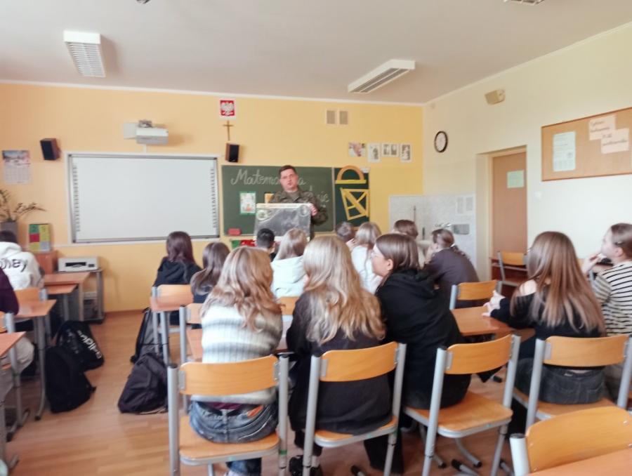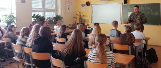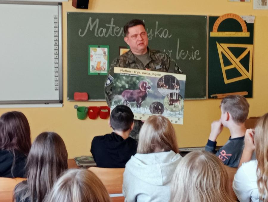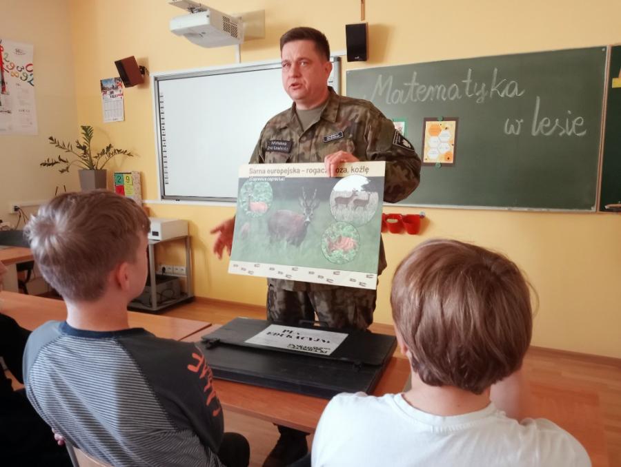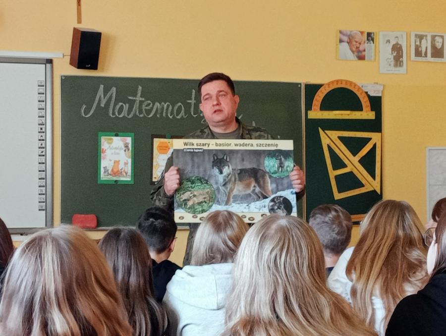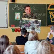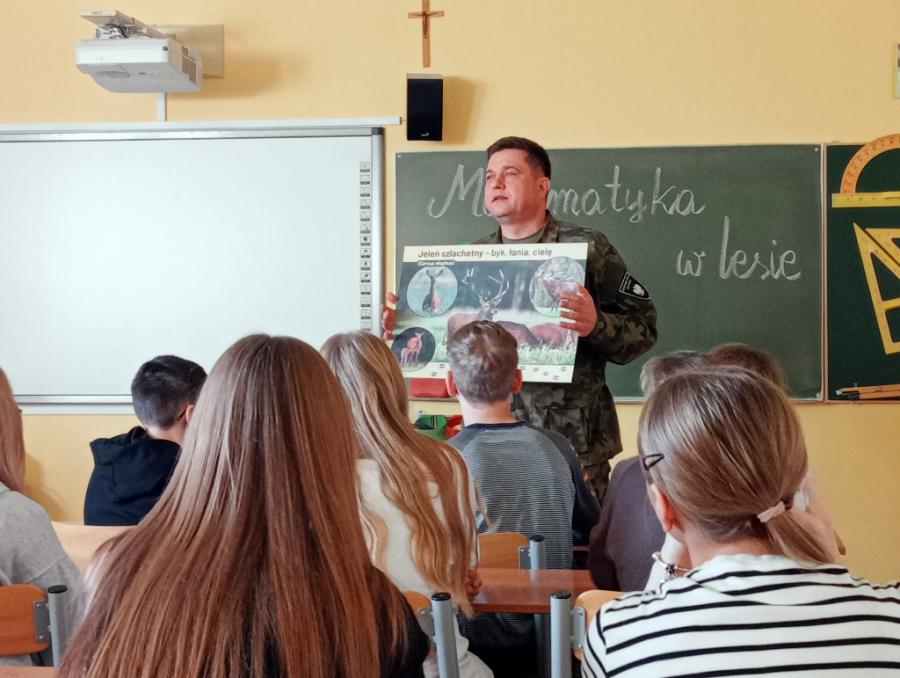 29 października odbyło się spotkanie uczniów z panem Arturem Karasińskim, Komendantem PSŁ, w ramach projektu „W poszukiwaniu zmiennych”. Podczas zajęć uczniowie poznali wiele ciekawych informacji dotyczących zwierząt żyjących w okolicznych lasach, powierzchni, jaką zajmują kompleksy leśne, długości życia wybranych gatunków oraz ich liczebności.